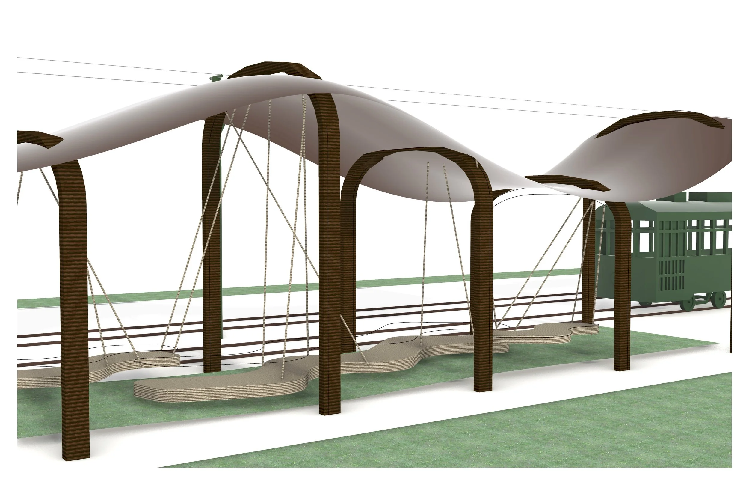 Swing pavilion designed as a stop for the trolly
